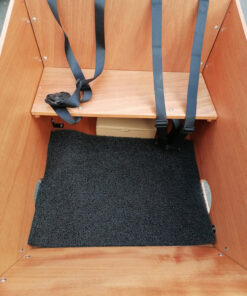 Inklusive einer Sitzbänken mit zwei Sitzplätzen und zwei 3-Punkt-Gurten.