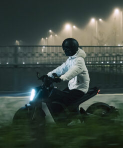 Die Sicherheit kommt bei diesem Elektromotorrad nicht zu kurz. Es verfügt über eine fortschrittliche Bremsanlage mit ABS, Stabilitätskontrolle, Toter-Winkel-Kontrolle und ein Anti-Diebstahl-System. Darüber hinaus ist es mit einem verstellbaren Fahrwerk ausgestattet, das sich an verschiedene Straßenbedingungen anpassen kann.
